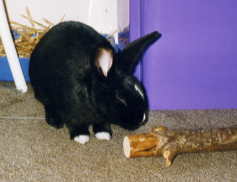 - If your rabbit loves gnawing on wooden furniture, offer him plenty of chew toys (untreated pine block, apple and pear tree twigs, seagrass mats, cardboard boxes). Avoid putting litter-trays near light-coloured walls and furniture to prevent urine-staining.