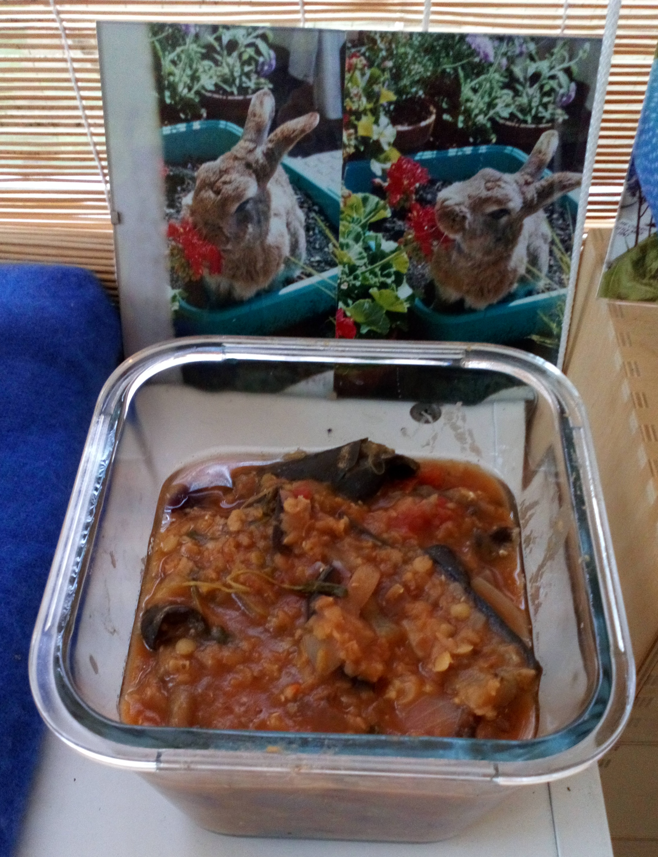 Cottontails’ Aubergine/Eggplant & Lentil Soup