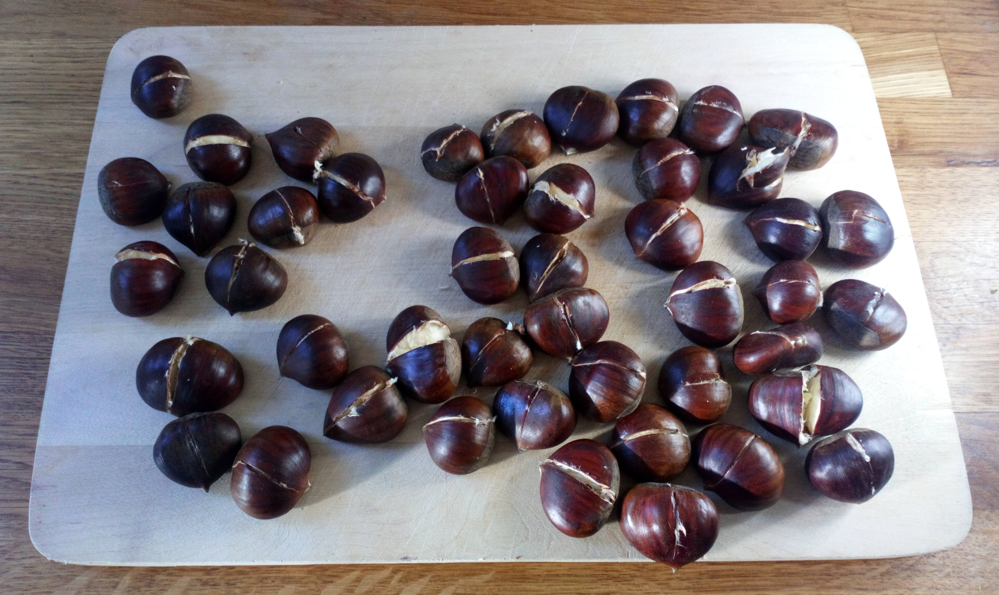 Our beloved Italian grandma Cinzia used to make these on Sunday afternoons. Place the chestnuts in a pot and cover with water (there’s no need to score them first). Once the water boils, simmer on a low heat for about 45 minutes or until tender. To eat, cut or gently squeeze open, you can also scoop them out with a teaspoon.